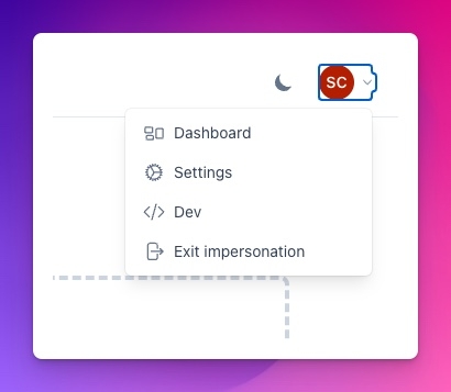 Once the admin has finished, the sign out button will be replaced with an “Exit impersonation” button.