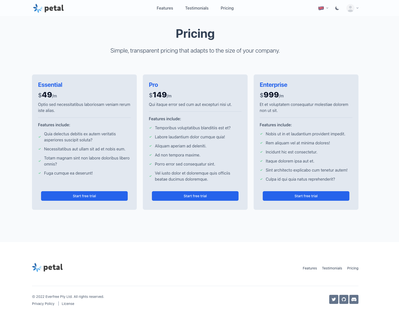 Includes a header and footer - for use in public facing, marketing pages. The public layout is available in router.ex via the :public_layout pipeline: