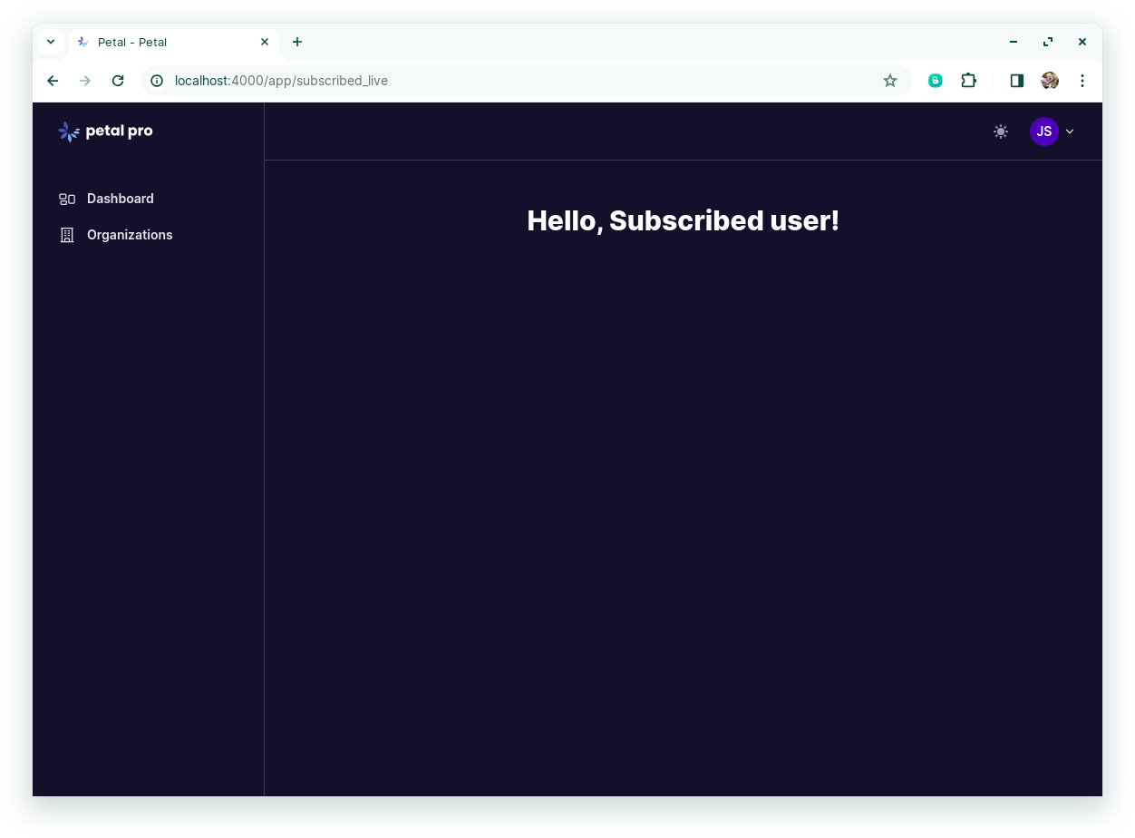 Finally, the last thing to be aware of is lib/petal_pro_web/routes/subscription_routes.ex. There are two locations in this file where you can add new routes for subscribed users:
