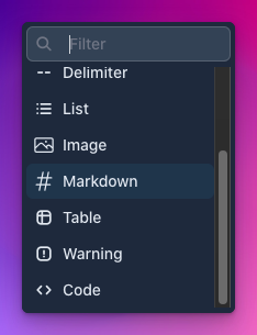 We won’t go into detail about the ins and outs of Editor.js. If you want to learn more, head on over to their documentation. We’ll just highlight the parts that are important to our new markdown feature.